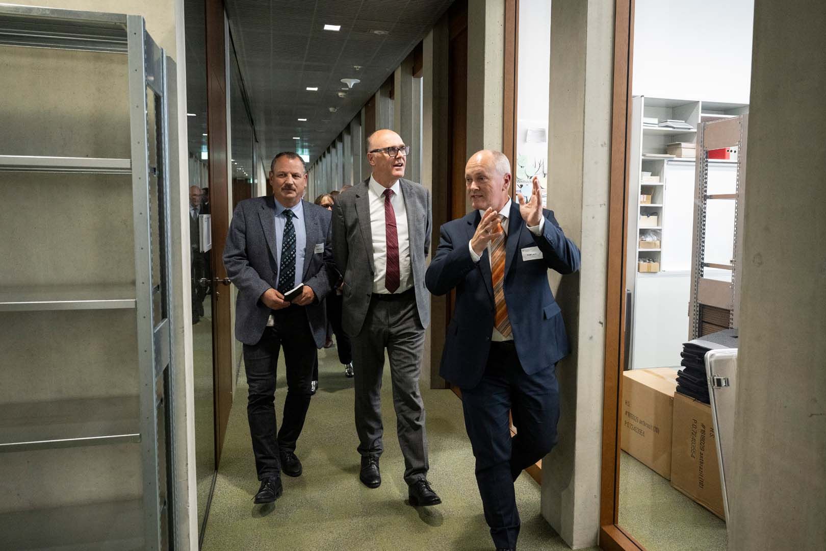 Bundesrat Martin Pfister nutzte die Gelegenheit, sich mit der Geschäftsleitung und den Mitarbeitenden des Bundesamts für Bevölkerungsschutz (BABS) in Bern auszutauschen. Bei einem Rundgang zeigten ihm die Mitarbeiterinnen und Mitarbeiter die vielfältigen Aufgaben und Tätigkeiten, mit denen sie zum Schutz der Bevölkerung und zur Bewältigung von Krisen und Notlagen beitragen.
