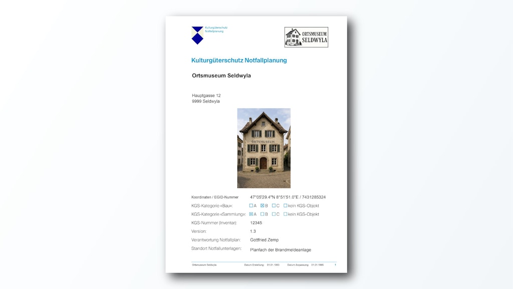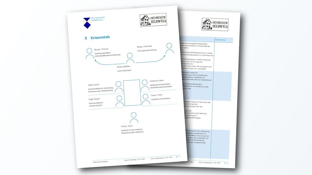 Die Erstellung eines Notfallplans ist für Gedächtnisinstitutionen wie zum Beispiel Museen, Archive und Bibliotheken, aber auch für unbewegliche Kulturgüter, essenziell, um auf unvorhergesehene Ereignisse vorbereitet zu sein. Ein gut strukturierter Notfallplan reduziert Unsicherheiten, erleichtert die Entscheidungsfindung und stellt sicher, dass alle Beteiligten genau wissen, welche Massnahmen im Ernstfall zu ergreifen sind. So lassen sich Risiken minimieren, Schäden begrenzen und der Schutz von Kulturgütern gewährleisten.